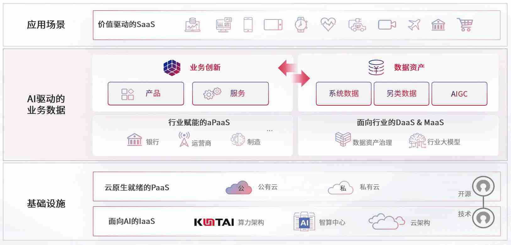 数字时代,,,围绕企业数字化转型的关键要素,,008PG国际数码开创性的提出数云融合战略和技术体系框架,,,,着力在云原生、、、、数字原生、、、、AI原生和信创产业上架构产品和服务能力,,,,为处在不同数字化转型阶段的快消零售、、汽车、、、、金融、、、、医疗、、政企、、、教育、、运营商等行业客户提供泛在的敏捷IT能力和融合的数据驱动能力,,构建跨界融合创新的数字业务场景和新业务模式,,,助力企业级客户建立面向未来的核心能力和竞争优势,,,全面推动社会的数字化、、智能化转型升级。。